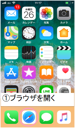 1.「safari」アイコンをクリックし、ブラウザを開きます。