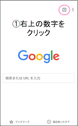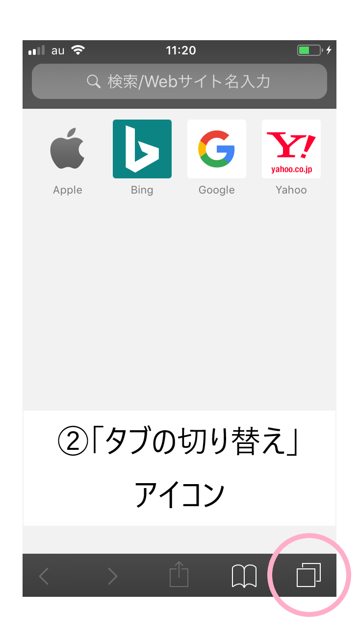 2.ブラウザを開き、右下にある「タブの切り替え」をクリックします。