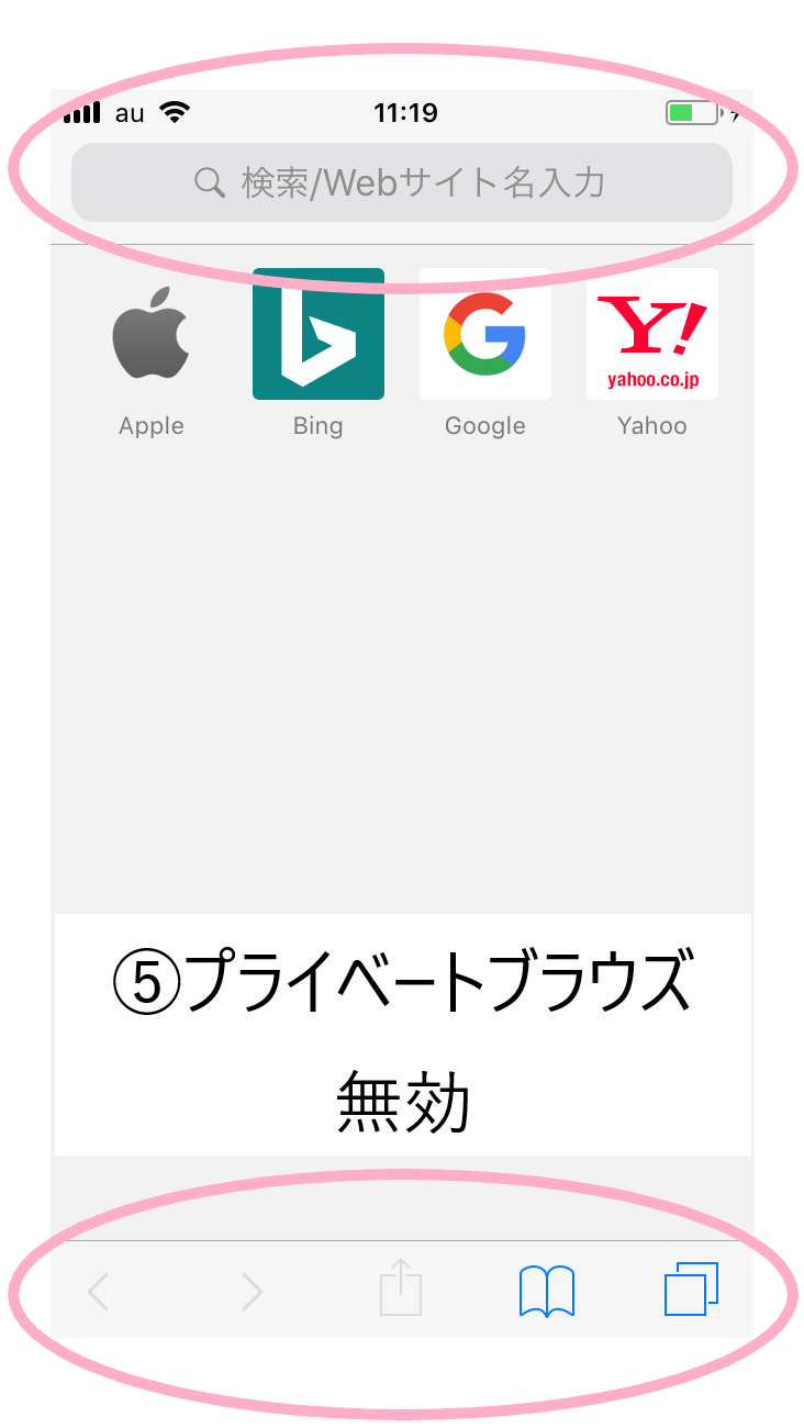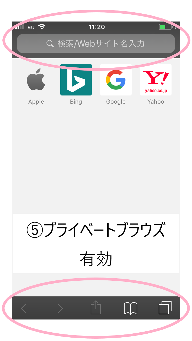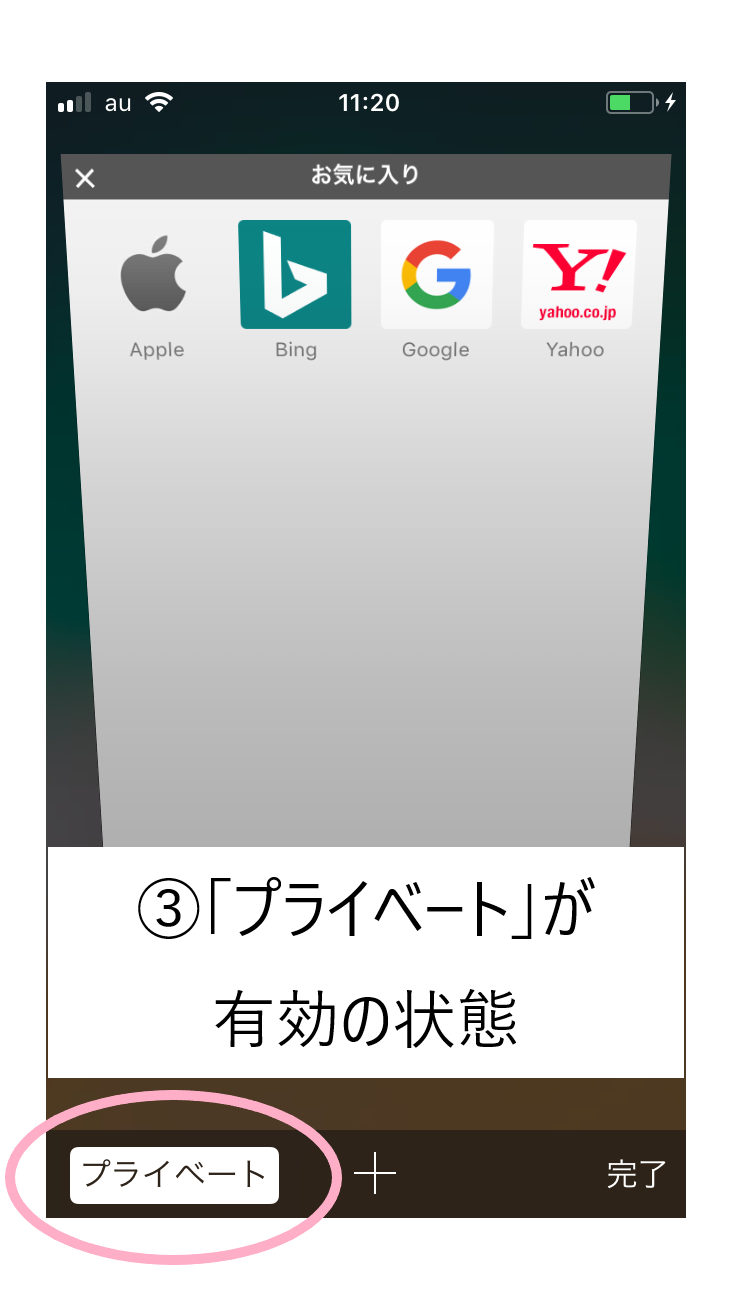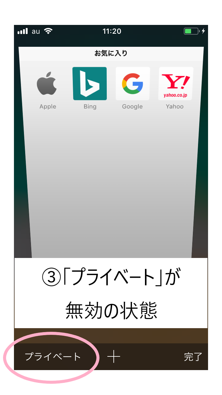 5.「プライベートブラウズ」が無効になっていることをご確認ください。