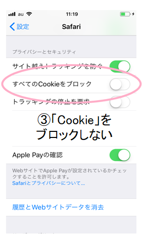 3.「すべてのCookieをブロック」を選択し、無効にします。